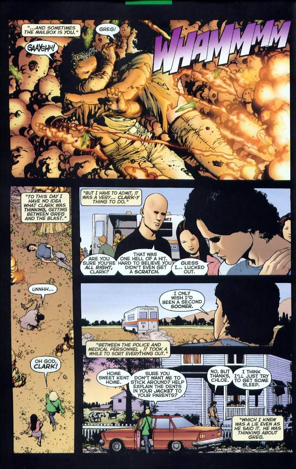 | Quote (Jor-El) Sometimes you get to blast the mailbox and sometimes the mailbox is you Не знаю как перевести, но у американских подростков есть такая "забава" - ездить на машине по округе и сшибать почтовые ящики. Может как-то с этим связано?